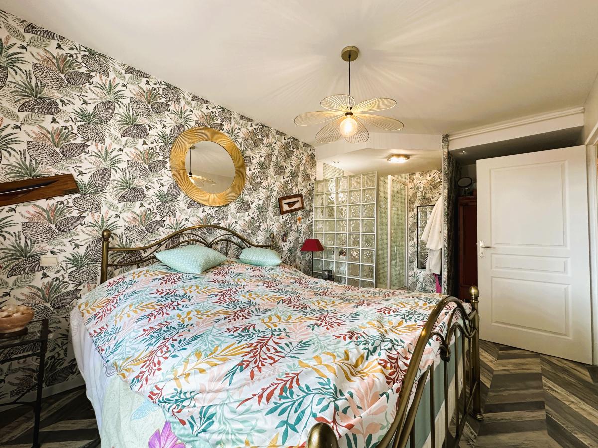 - Au rez-de-chaussée : une entrée par le salon/séjour, un dégagement, WC, une cuisine aménagée et équipée, une arrière-cuisine, une chambre avec salle de douche et dressing.